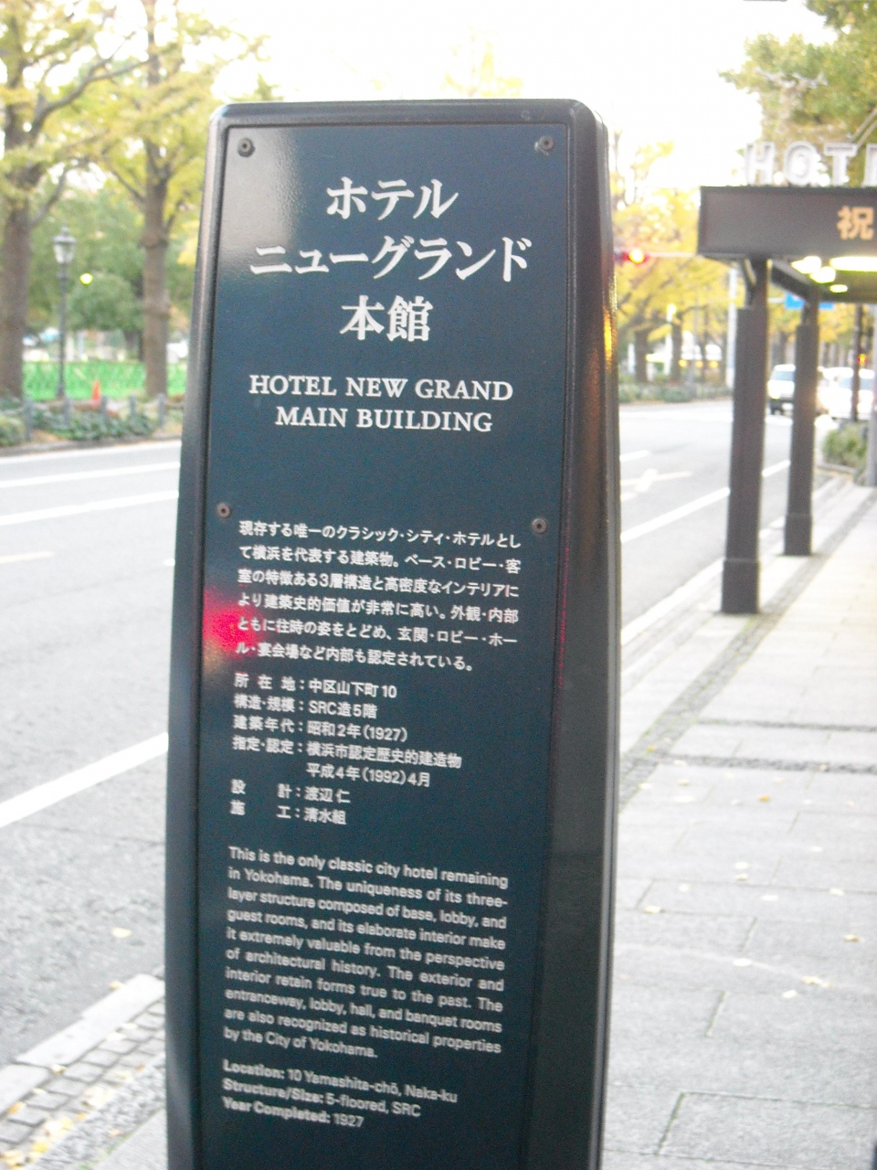 横浜で現存する唯一のシティ・ホテルとあります。マッカーサーが新婚旅行に寄ったそうですが、昭和20年9月進駐軍最高司令官として厚木基地より直行してここに宿泊しています。日本政府が首都占領を嫌がり離れた横浜にしたようです、横浜開港も同じなのですが我が国の体質は変わらないようです。