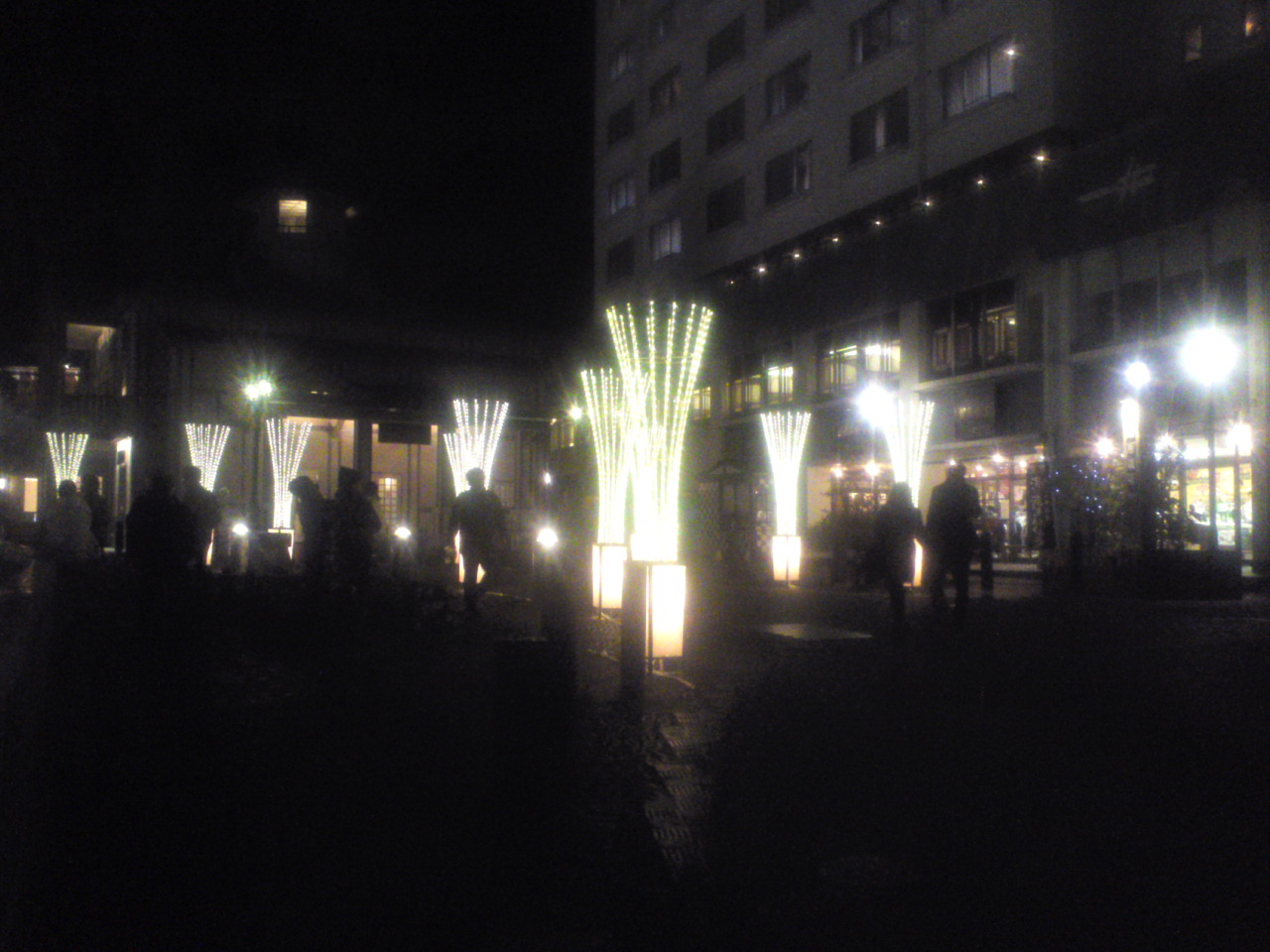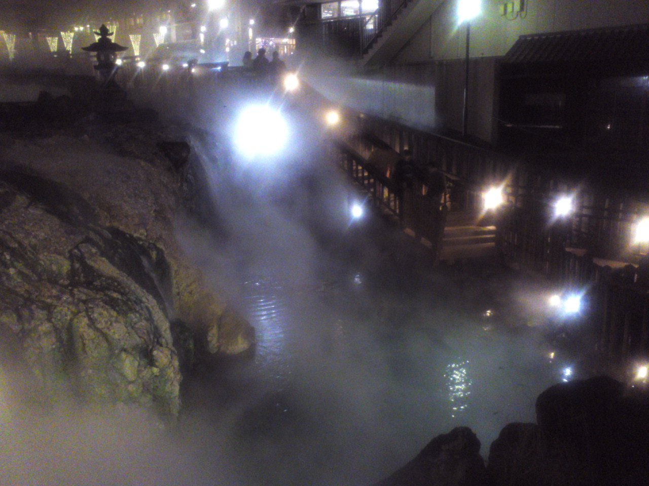 夜はライトアップした湯畑にシャトルバスで出かけました。
