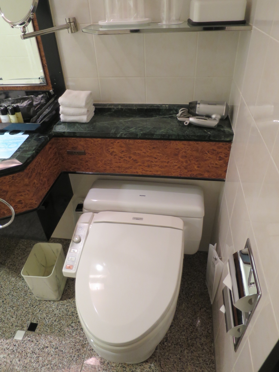 客室内ですがタワーが建ってから既にかなりの年月を経ていることもあって、近年開業した高級ホテルと比べるとやや古さを感じるものもあります。特に客室玄関の重々しい鉄扉やエアコンの操作部などはアナログ的で微調整などが効かないものでした。