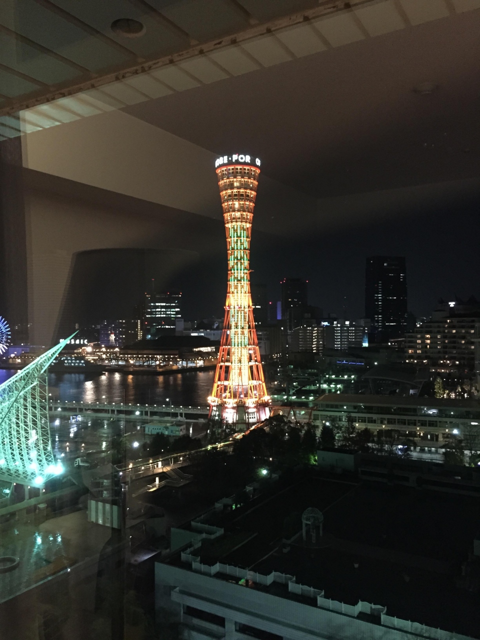 部屋もなかなか素晴らしく、窓からは神戸のシンボル ポートタワーが見え、ライトアップされていてとてもきれいでした。