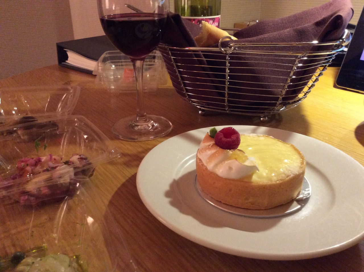 クリスマスの金曜日なんですが、仕事で自宅に帰れずハイアットリージェンシー京都に宿泊することに。これがクリぼっち…。レストランはカップルが多く、一人で食事するのも気乗りがせず、アンティパストをテイクアウトして、頂き物のボジョレーヌーボーとルームサービスのパンを部屋でいただきました。メリークリスマス!