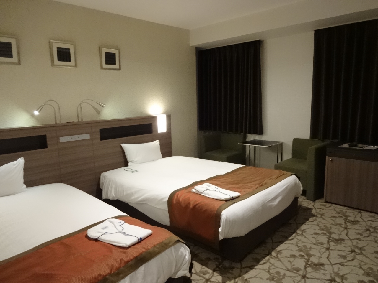 部屋は清潔で、空気清浄機やハイパワーのドライヤーが備わっています。バス、トイレは少し狭く感じました。