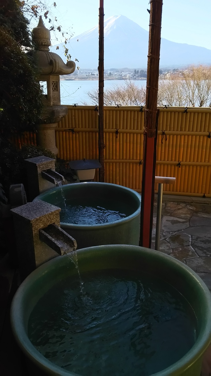 お風呂は、内湯からは窓の汚れで富士山が良く見えず、露天風呂は半身浴でないと見えません。壺風呂もありますが、入ると富士山は見えません。お肌すべすべ感は無いお湯でした。