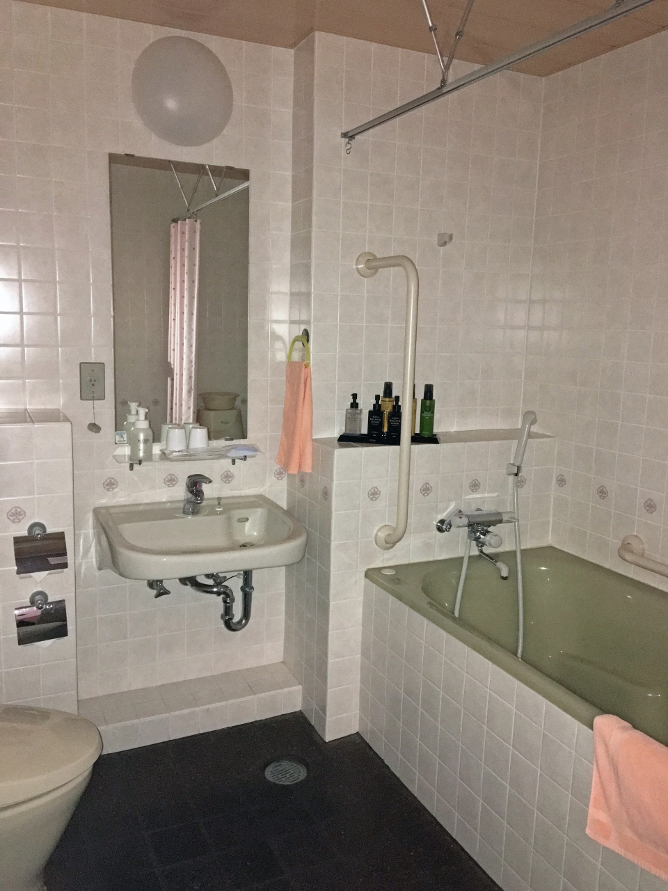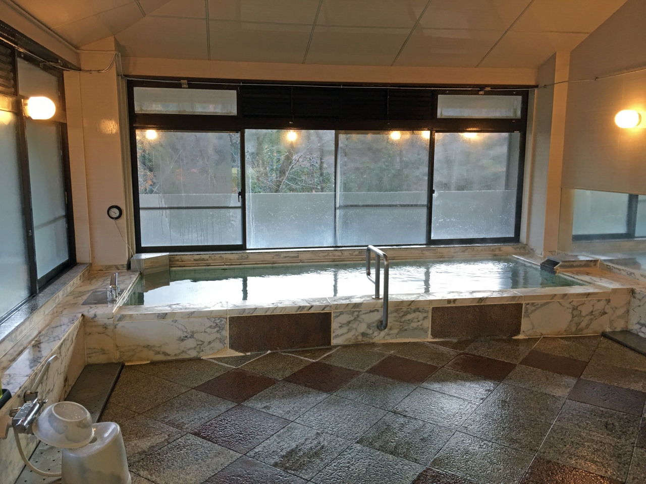 温泉も公衆浴場という印象です。実際日帰り温泉が、11時00分から14時30分までとなっているので、宿泊者は、15時00分から24時00分まで、朝は6時00分から9時00分までしか入浴できません。浴室のロッカーは宿泊者も有料です。飲物も、水以外は自販機で購入することになります。