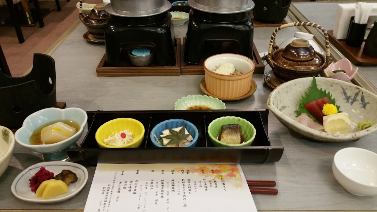 夕飯は和食です。アルコールは1500円で、ソフトドリンクは500円でセルフの飲み放題。