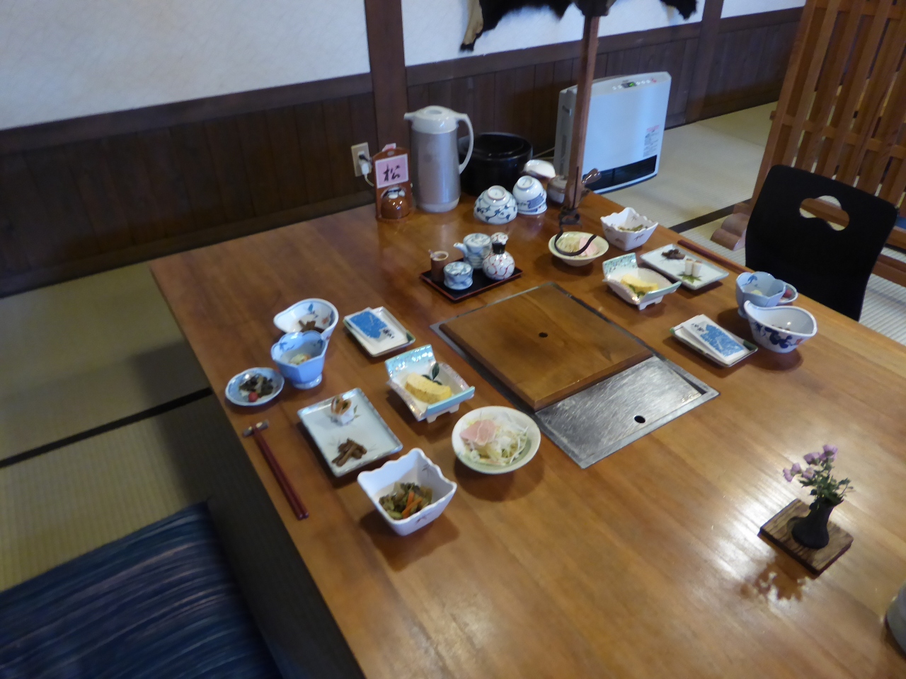 食事も地元のものを囲炉裏端の食事処でいただけて、それがこの宿の雰囲気にふさわしく満足、けれどやっぱり特筆すべきはそのお湯で、硫黄臭漂う中身体を浸せばぬるぬるトロトロ感が半端なく、出た後はすべすべになって大感激、これを体感できただけでも来た甲斐があったと思った。