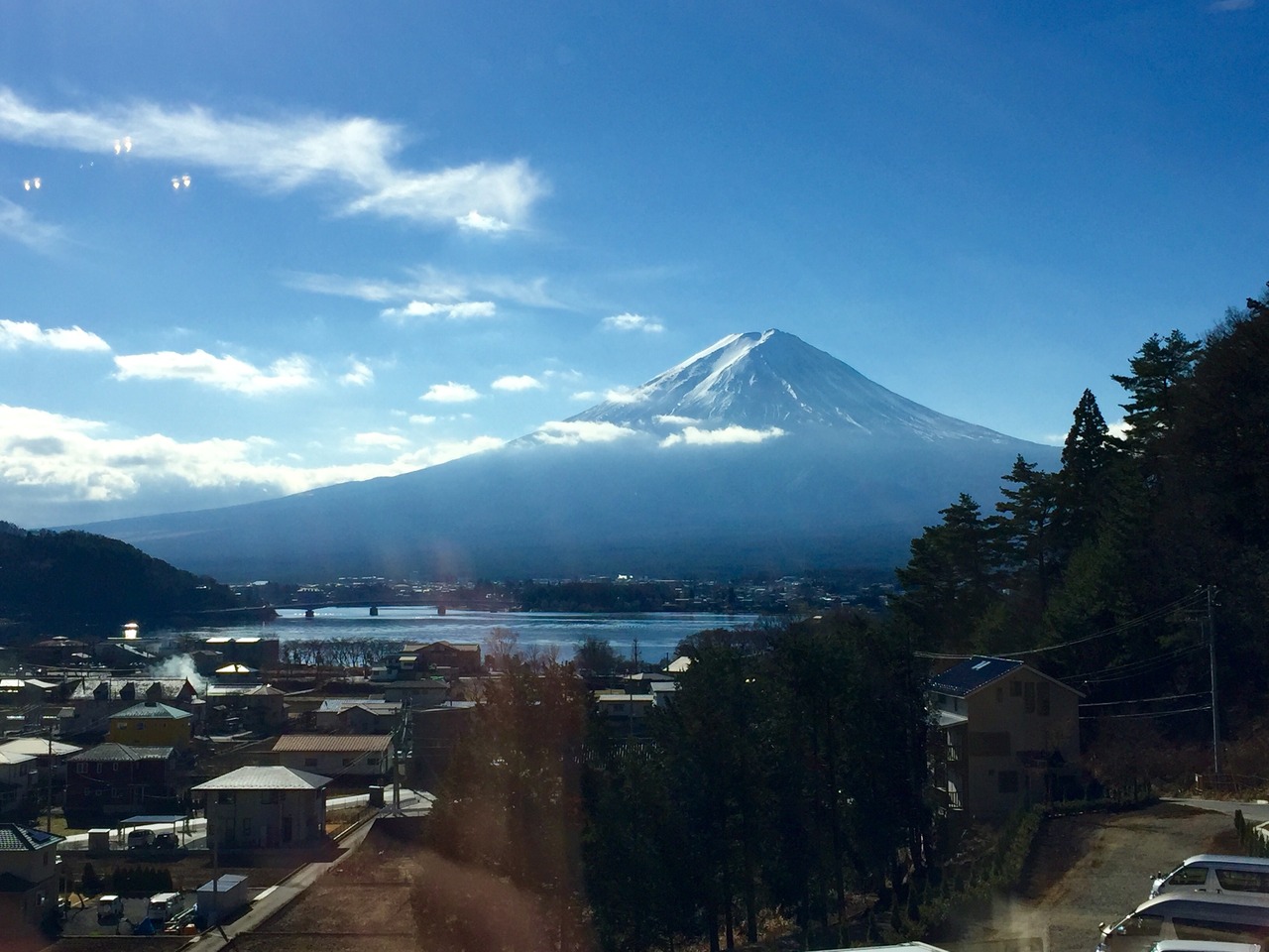 まずお風呂!せっかくの天然温泉の大浴場が、まさかの浸かりながらでは富士山が見られないのはひどい。立たないと富士山が見えない。目隠しが邪魔。