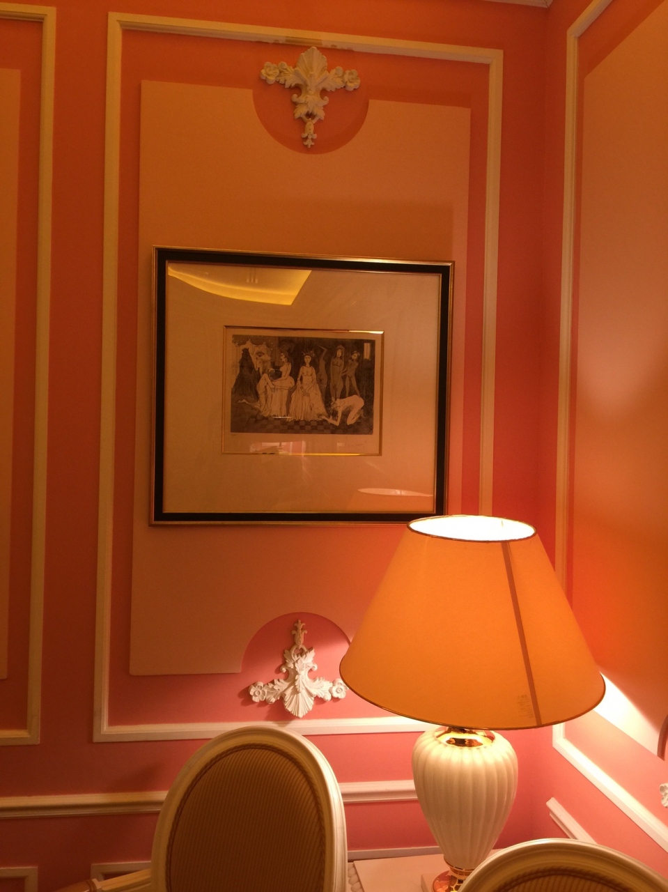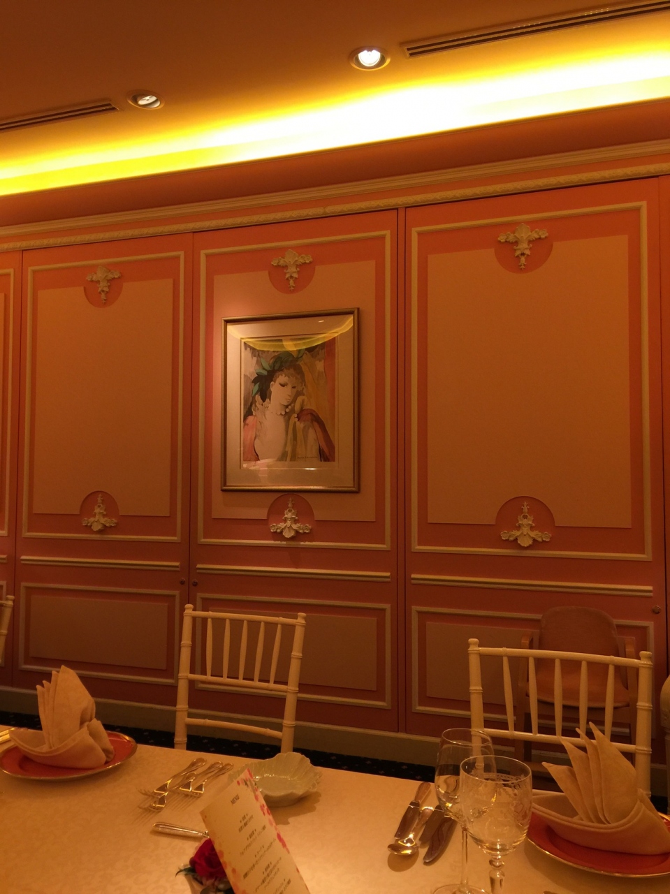 今回はマリーローランサンの個室をお願いしまささた。ピンクの壁紙にローランサンの絵がところどころにあり、華やかで新年にふさわしいお部屋でした。
