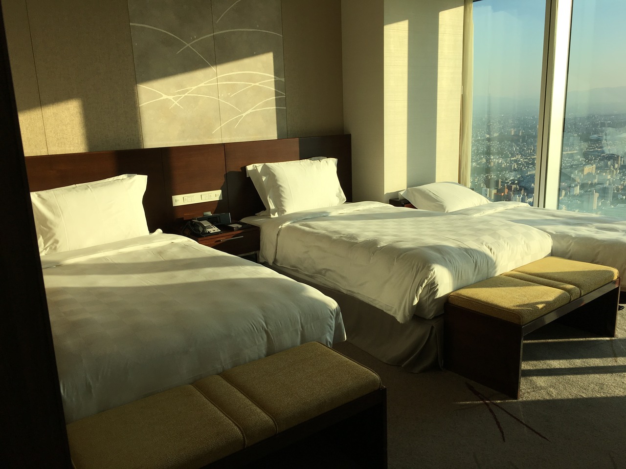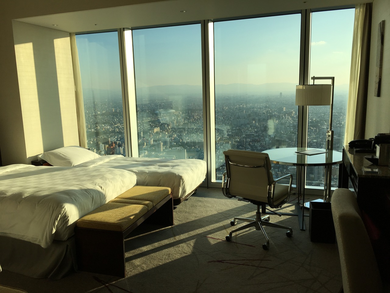 ・眺望。カーテンを開けたまま外出して、夜の食事から戻った時に広がる景色は素晴らしかった。宿泊特典の早朝時間での展望台入場のサービスも良い。