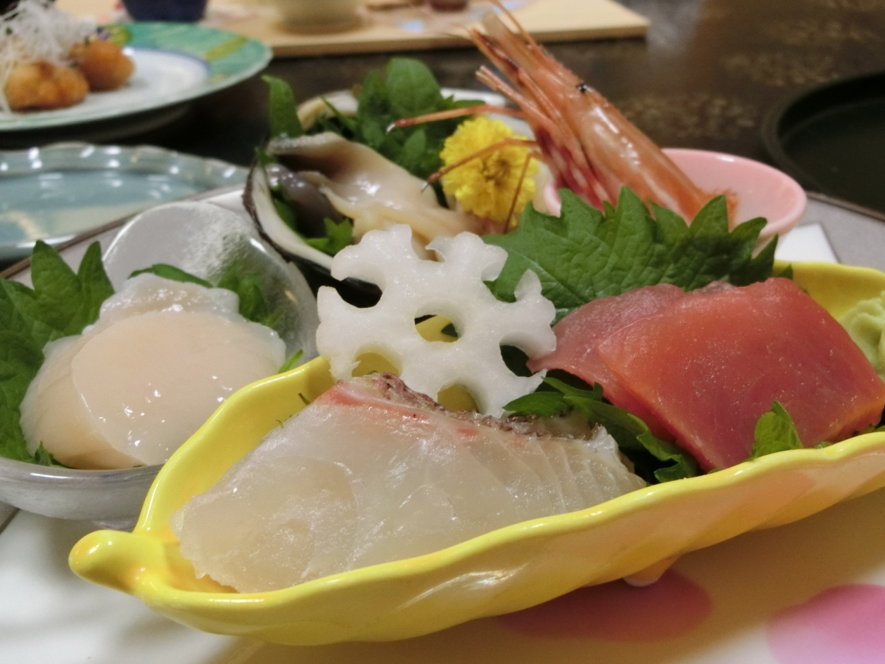 海扇閣宿泊 展望大浴場 露天風呂 お部屋夕食 フロントデスク前津軽三味線ライブ