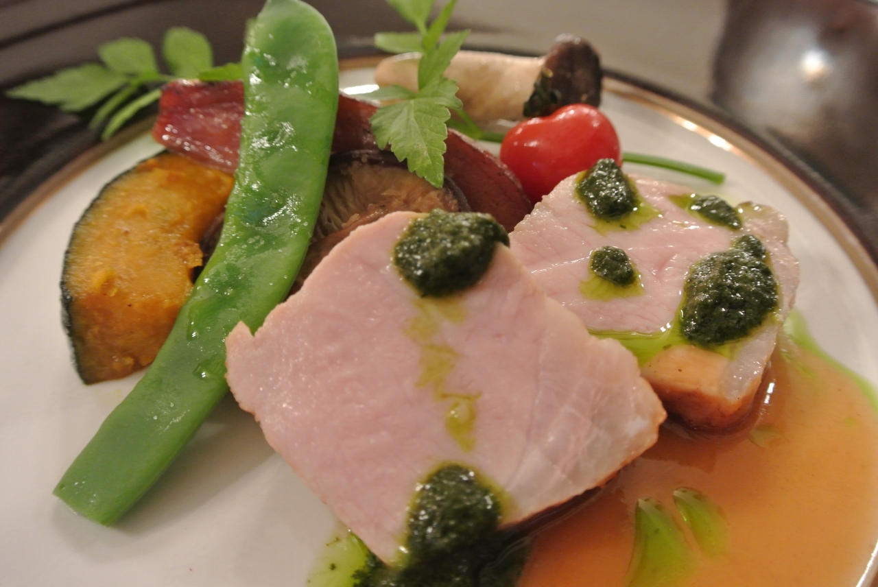 夕食は、フレンチのフルコース!お料理、食器、サービス、どれを取っても文句なし。あ、貧乏人にはアルコールのお値段が少々お高くて、文句が出ました・・・。