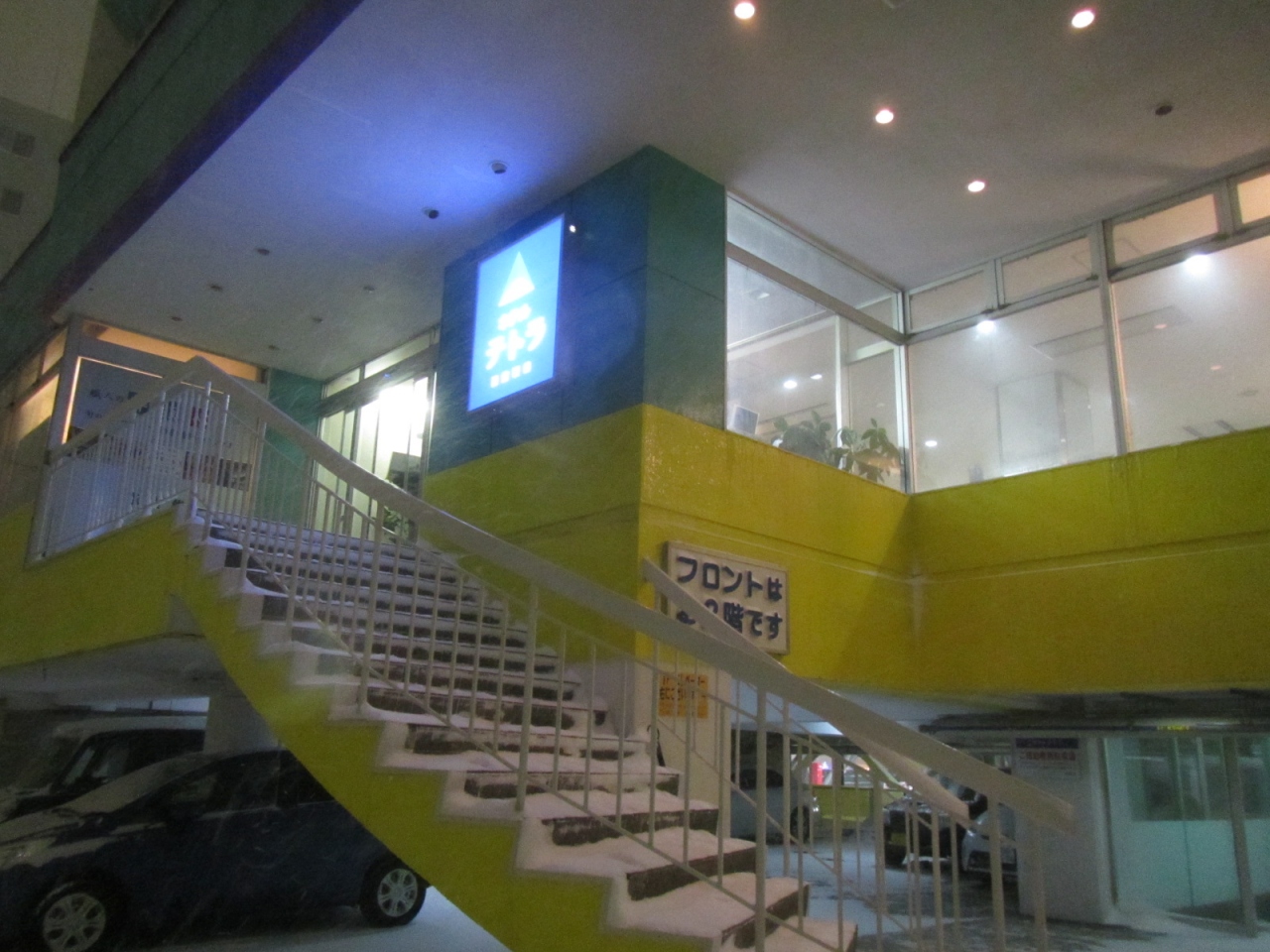 フロントが2階にあって、エレベーターが1階の駐車場まで下りているため、夜なども気兼ねなく外出できます。