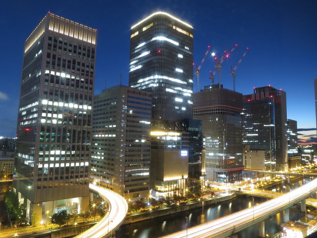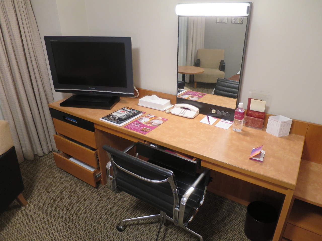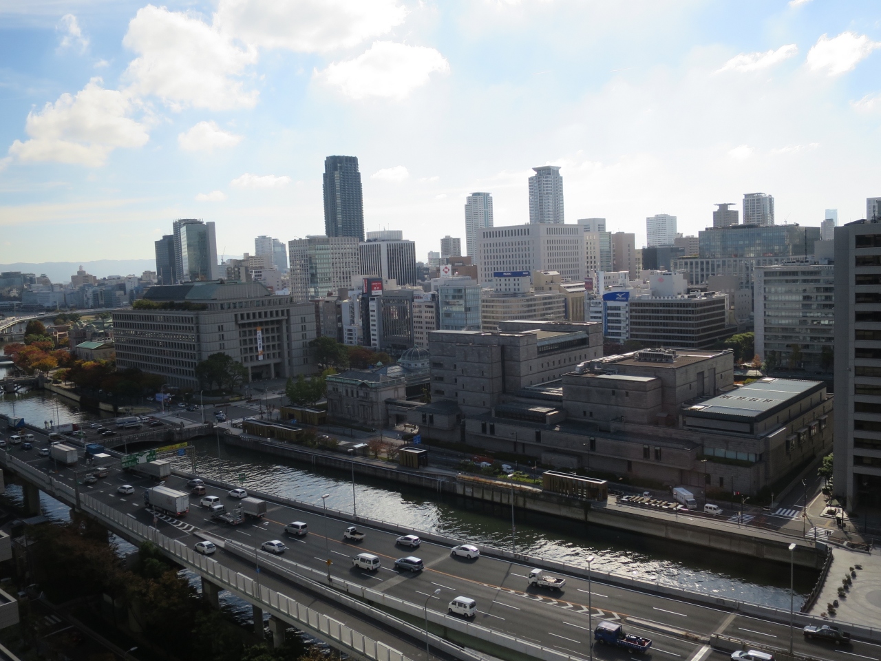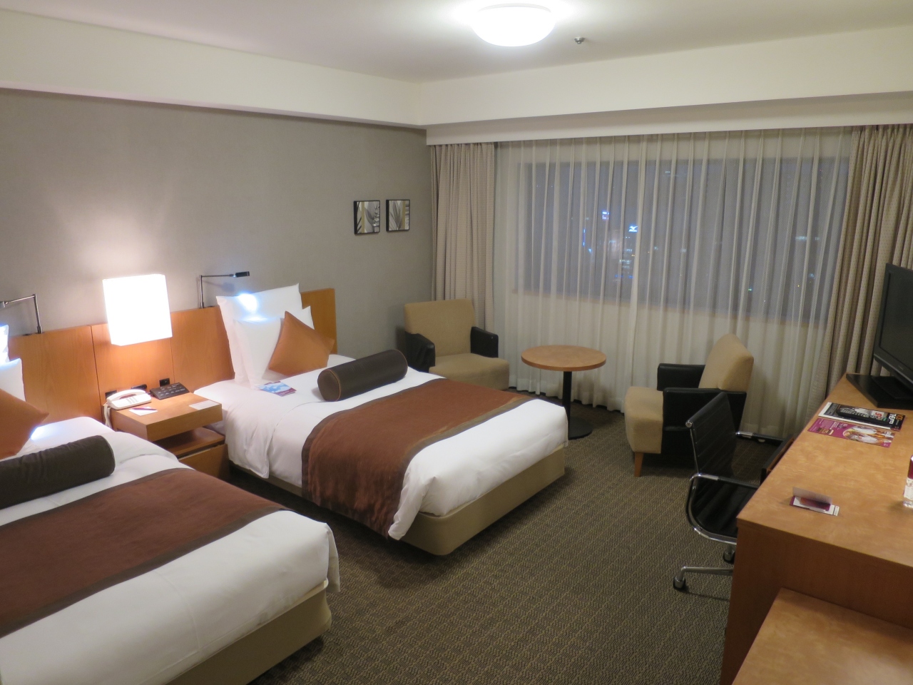 客室は他のクラウンプラザ同様にシックで落ち着いており、窓外に広がる中之島の夜景は眼下を横切る阪神高速の車の流れと相まって、非常に綺麗でした。