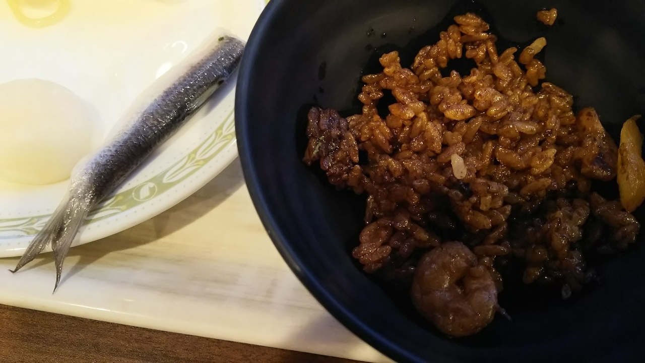 雨の日でしたが、駅から遠くなく不便なく到着することができました。エレベーターの張り紙に翌日の朝食レストランは混雑が予想されるとあり、団体さん?で混んでいました。朝食に岡山名物のままかりやえび飯があり、食べることができました。