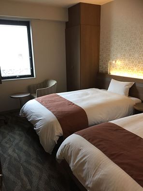 室内はモダンな造りで一人での利用したがツインのお部屋を