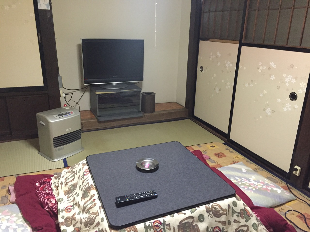サッシの窓ではなく木枠の窓ガラスに炬燵の部屋…