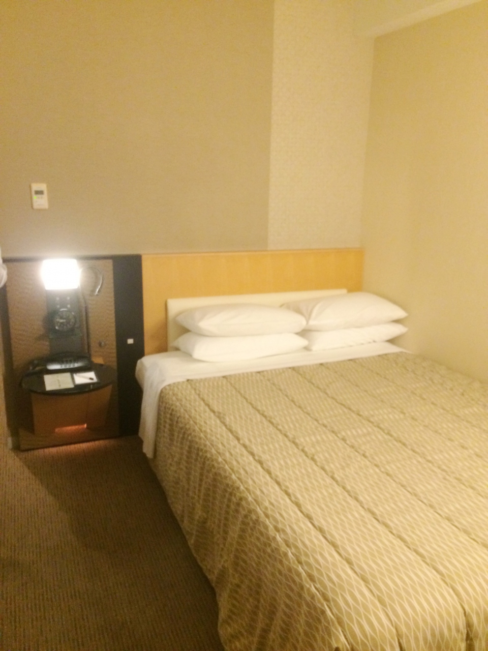 セミダブルのお部屋はホテルの写真そのままで、狭いですが圧迫感はなく、寝るだけならまったく問題ありません。
