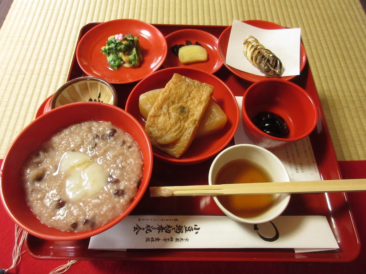 準備が出来たら呼ばれて、小豆粥とおかずを
