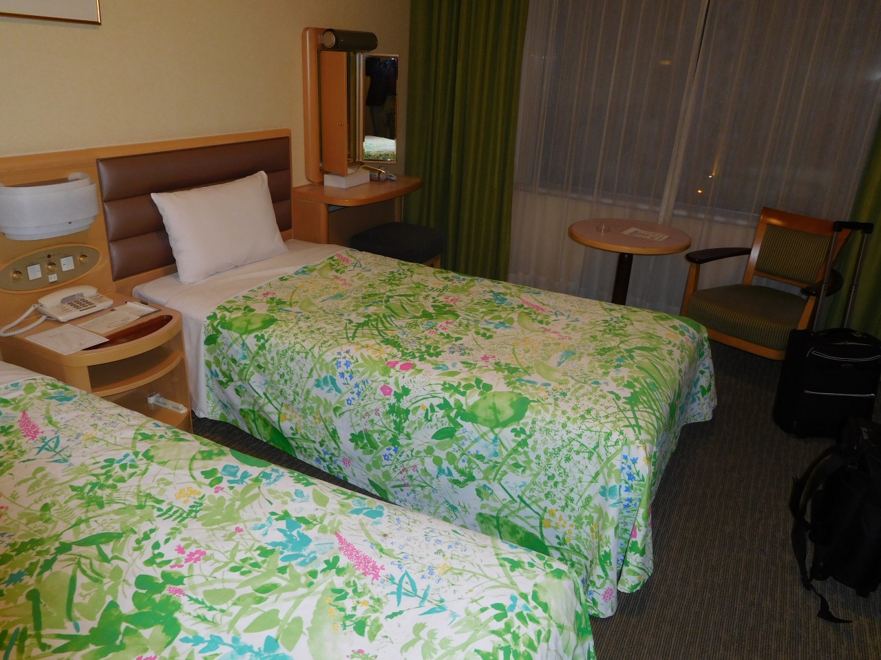 ツアーに組み込まれていたホテルです。札幌駅からはちょっと離れていますが、荷物なしならなんとか徒歩圏内。地下鉄だと、札幌駅からは南北線1駅、東西線1駅と、近い割には面倒。部屋は、ビジネスホテルと考えれば、まあ十分。朝食バイキングは十分いいものでした。