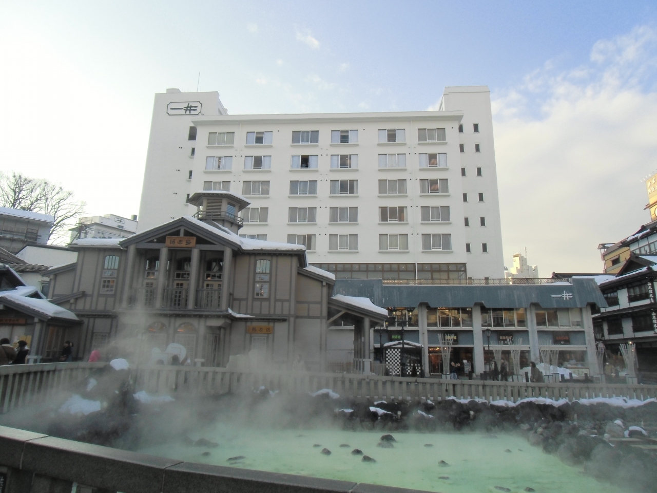 ホテル一井は湯畑が目の前にあるホテルです。江戸時代の創業から300余年の歴史をもつ老舗ならではおもてなしと湯煙情緒溢れる風情が時の流れを刻んでいます。