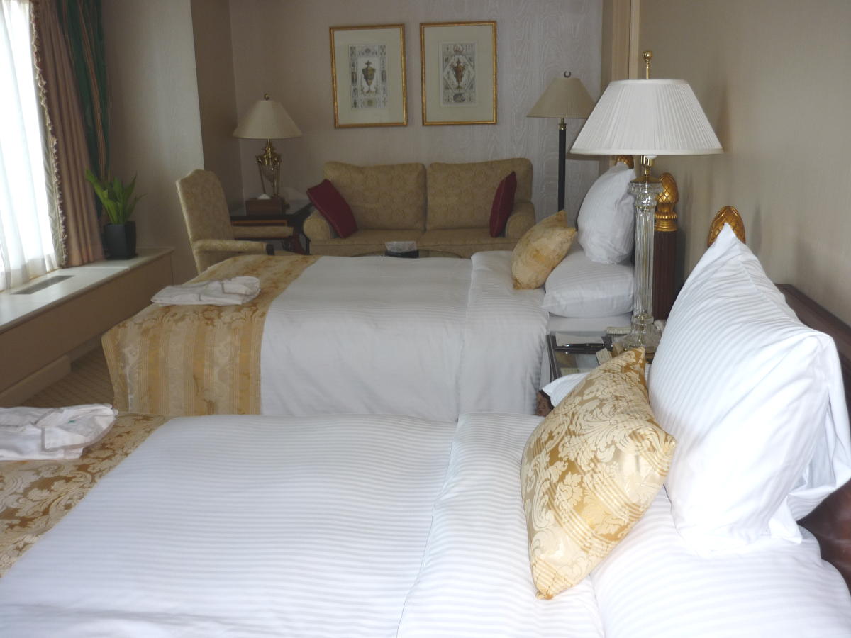 クラブフロアの「ヨーロピアンクラシックツイン」で宿泊しました。リーガロイヤルホテルを利用した中では、一番の広い部屋でした。少し古さが目立ちますが、「ベッド・ソファー」の配置、空間としては、「最高」の部類に入ります。
