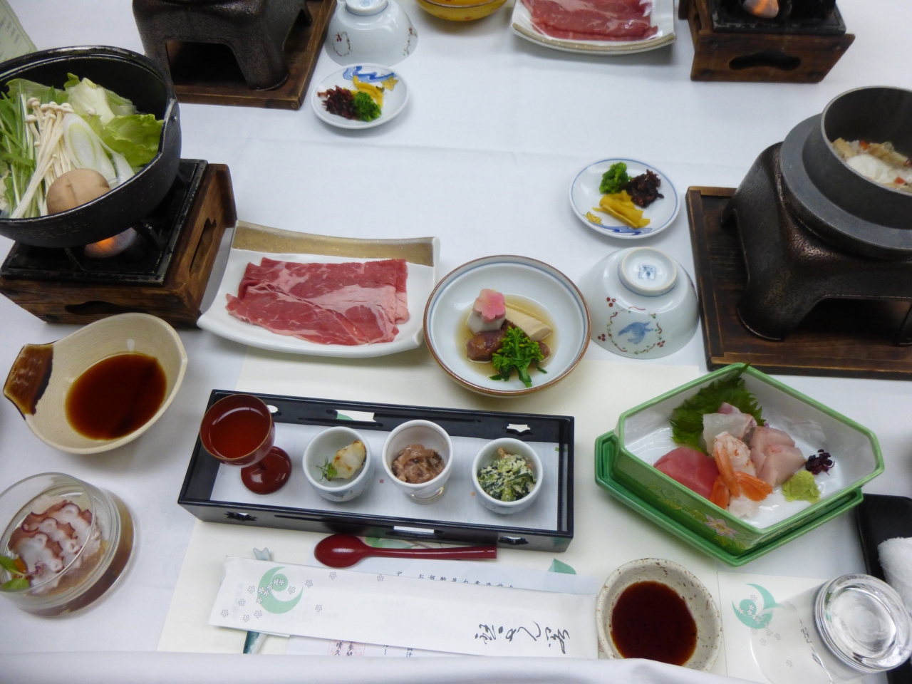 食事は和定食で8品ぐらいでしょうか。あたたかい釜飯も付いておなかいっぱいでした。