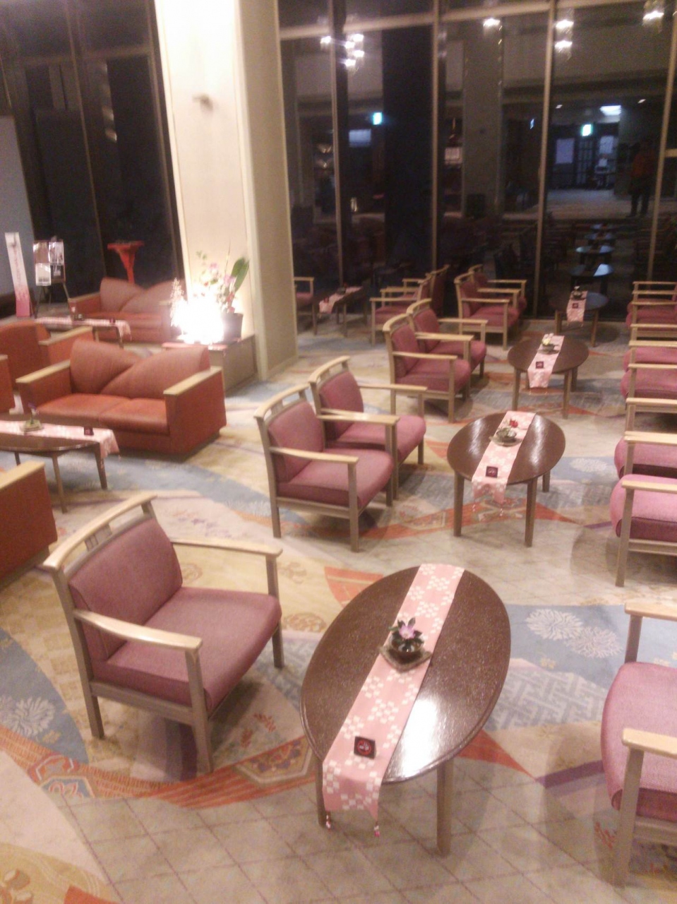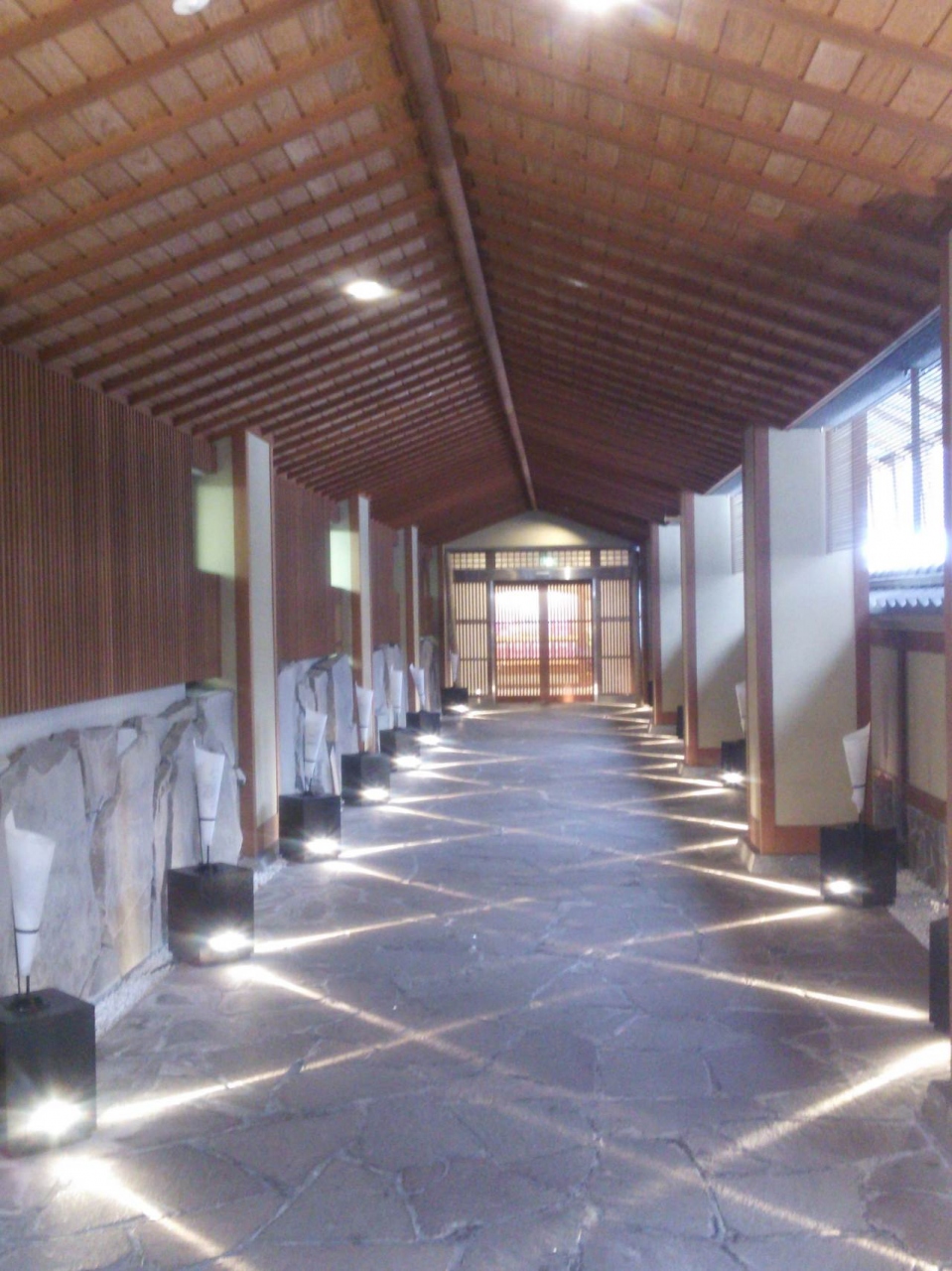 長く延びる玄関へのライティングにも工夫があり、夜にはホテル周りがライトアップされています。