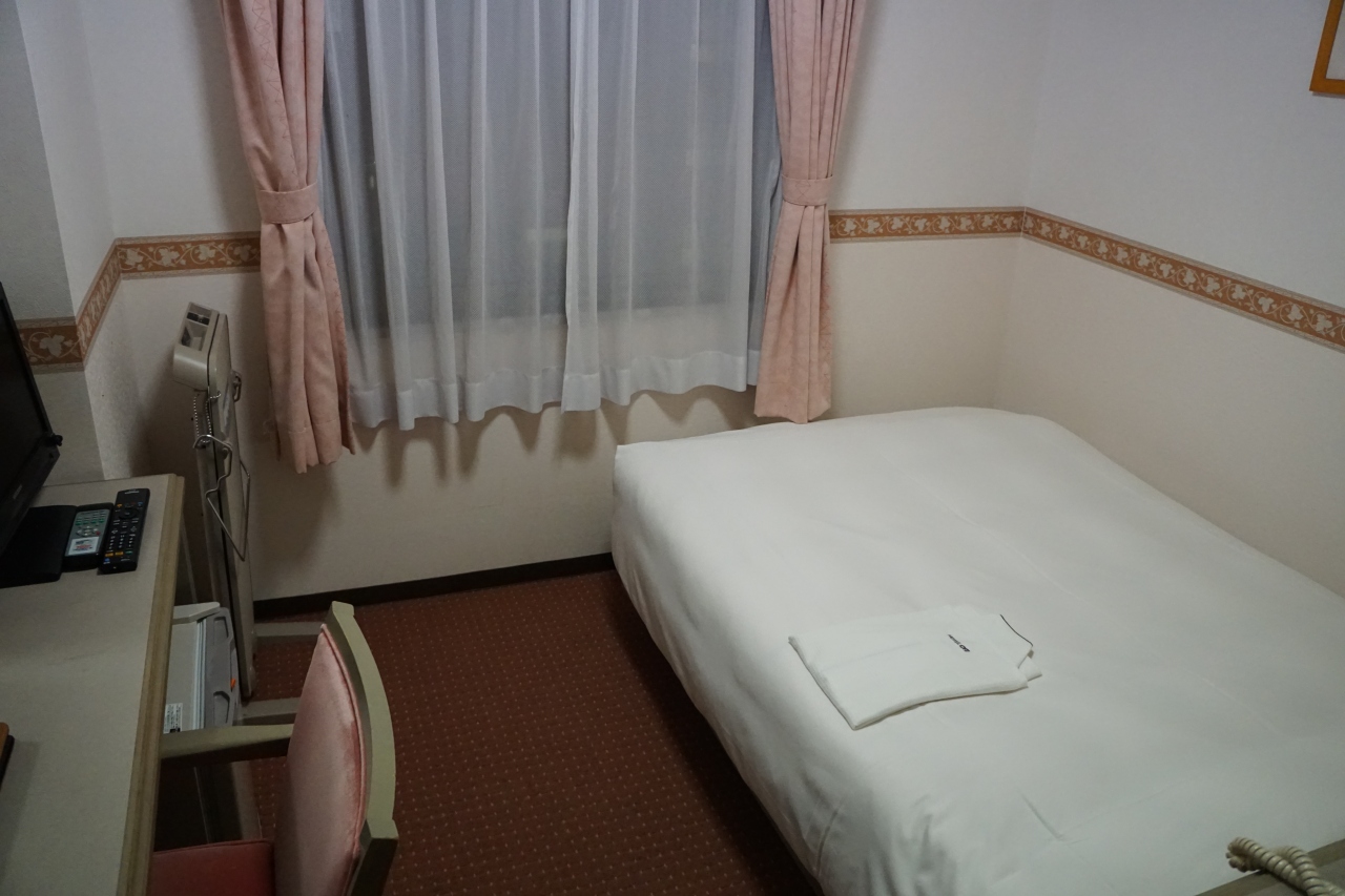 部屋は、ごく普通のビジネスホテル。レンタサイクルもやっていて、雨だったので利用しませんでしたが、これは使えると思います。