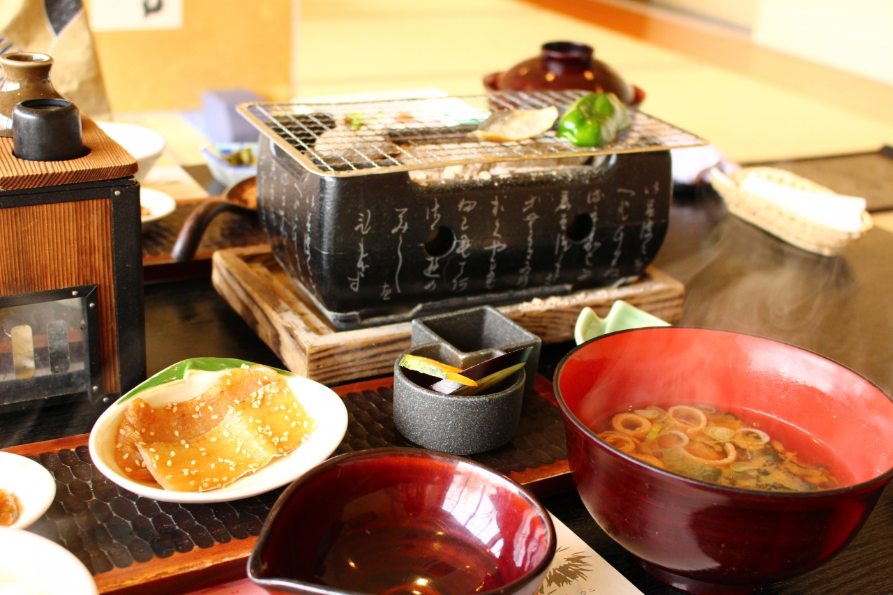 翌日の朝ごはんもとっても豪華で、お部屋ごとに土鍋で炊き上げたごはんを出してくれました。野菜とフルーツのスムージー、湯豆腐、自分で炙る干物、温泉卵、サラダなどなど、朝から食べ過ぎてしまうボリューム満点の内容でした。
