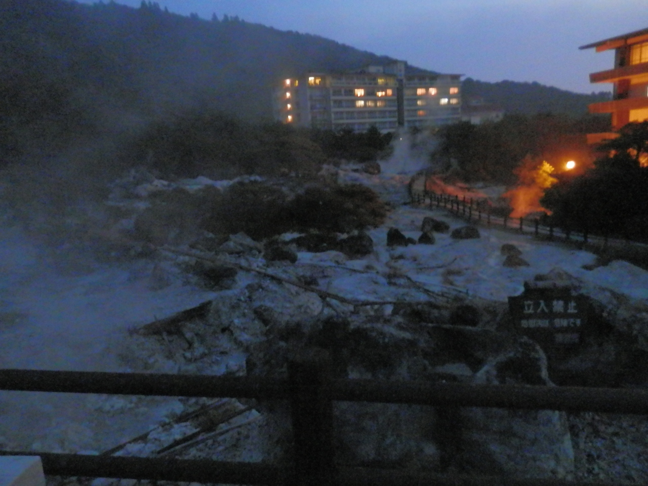 翌朝早く ホテル傍の地獄谷を散歩しましたが立ち込める湯煙を堪能しました。