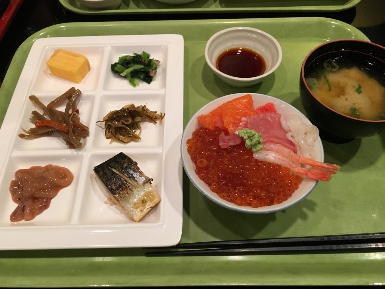 朝食バイキングはいくらなど食べ放題!ただすすきのが近いせいか?オジサマ達が多く、朝食会場で盛り上がっていました(笑)