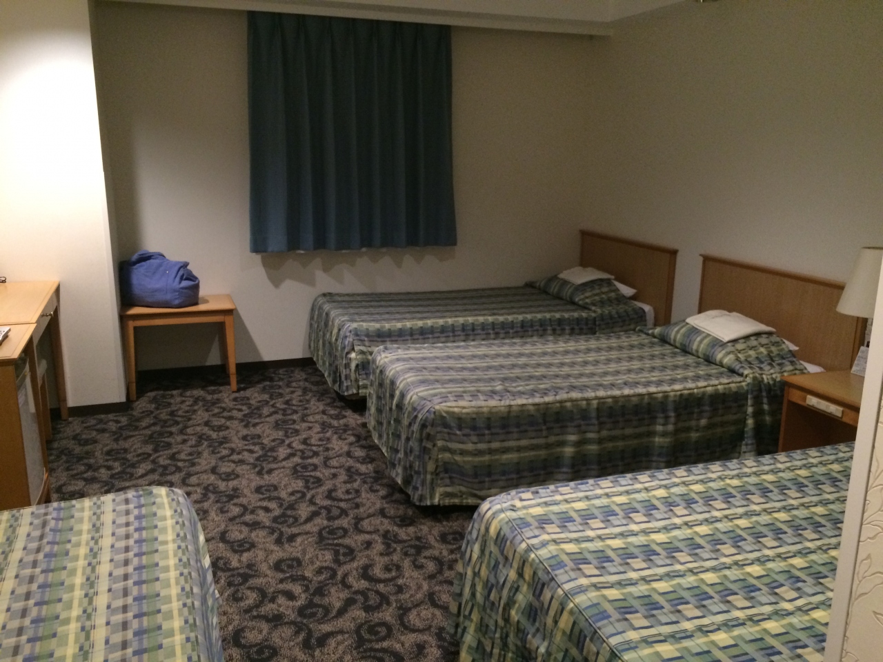 一番安い(=狭い)ツインを予約していたのですが、この日は満室とかで広い四人部屋にしていただけました。