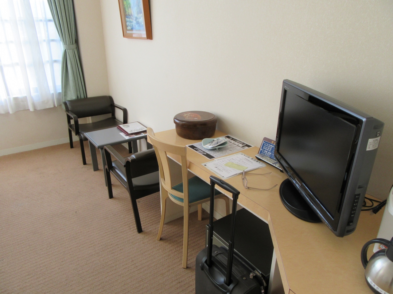 部屋は広めのツインです。風呂は温泉ではありませんがのんびり入れました。