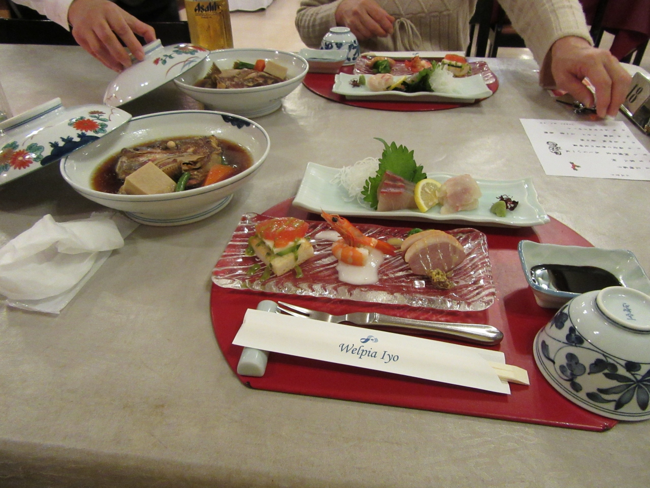 伊予市の施設で料金は安い。その上、65才以上20%引きとふるさと割り1000円があったので、ツイン2食付き7000円が4600円になりました。