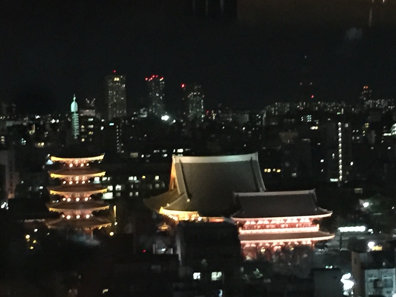 *浅草寺・五重塔のライトアップが上から見れて綺麗です。