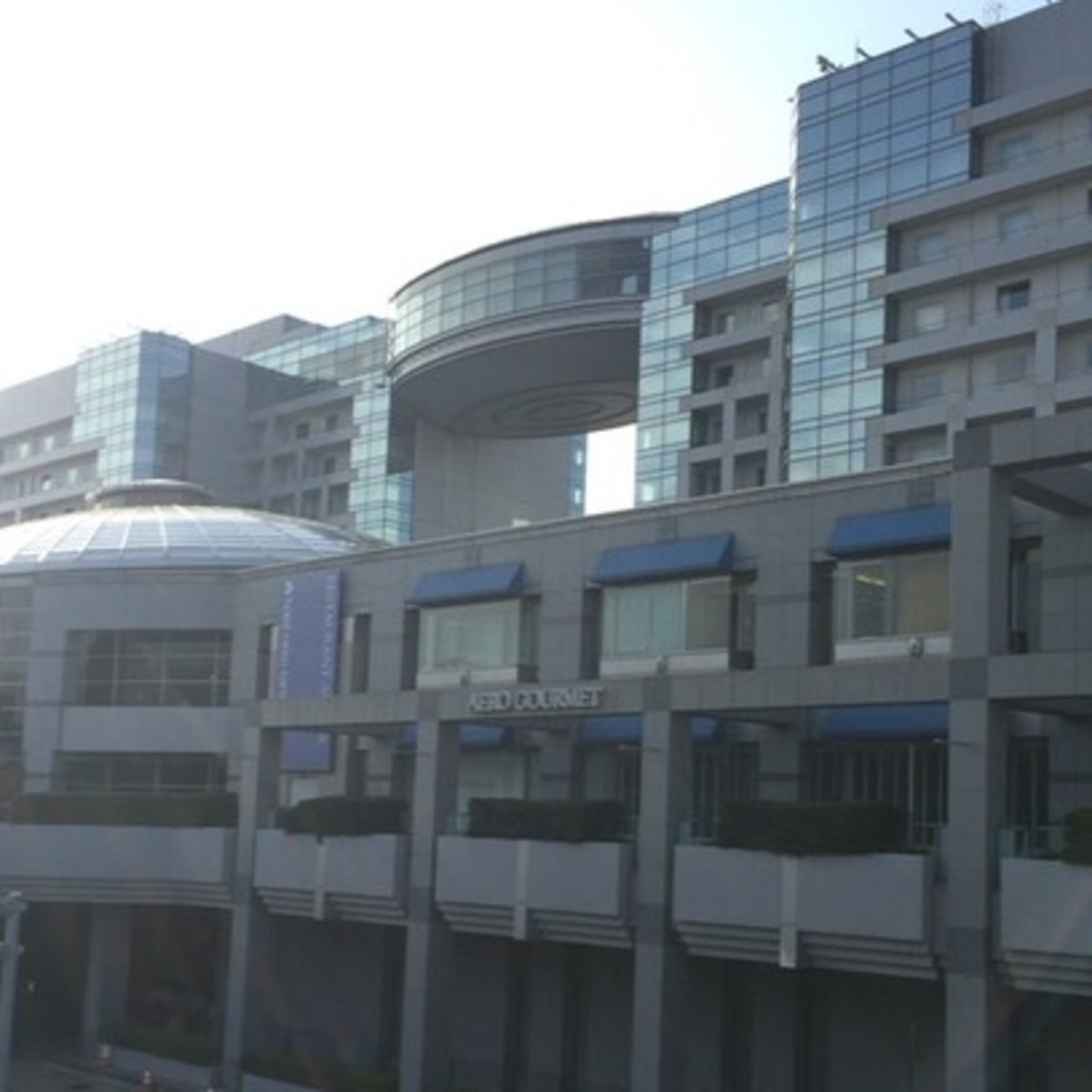 JRの乗り継ぎ方向に歩くとある、ちょっとだけお台場風の建物が印象的です。