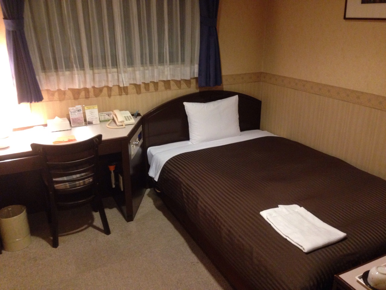 客室は一般的なビジネスホテル。ベッドは広めで浴室はユニットバス。