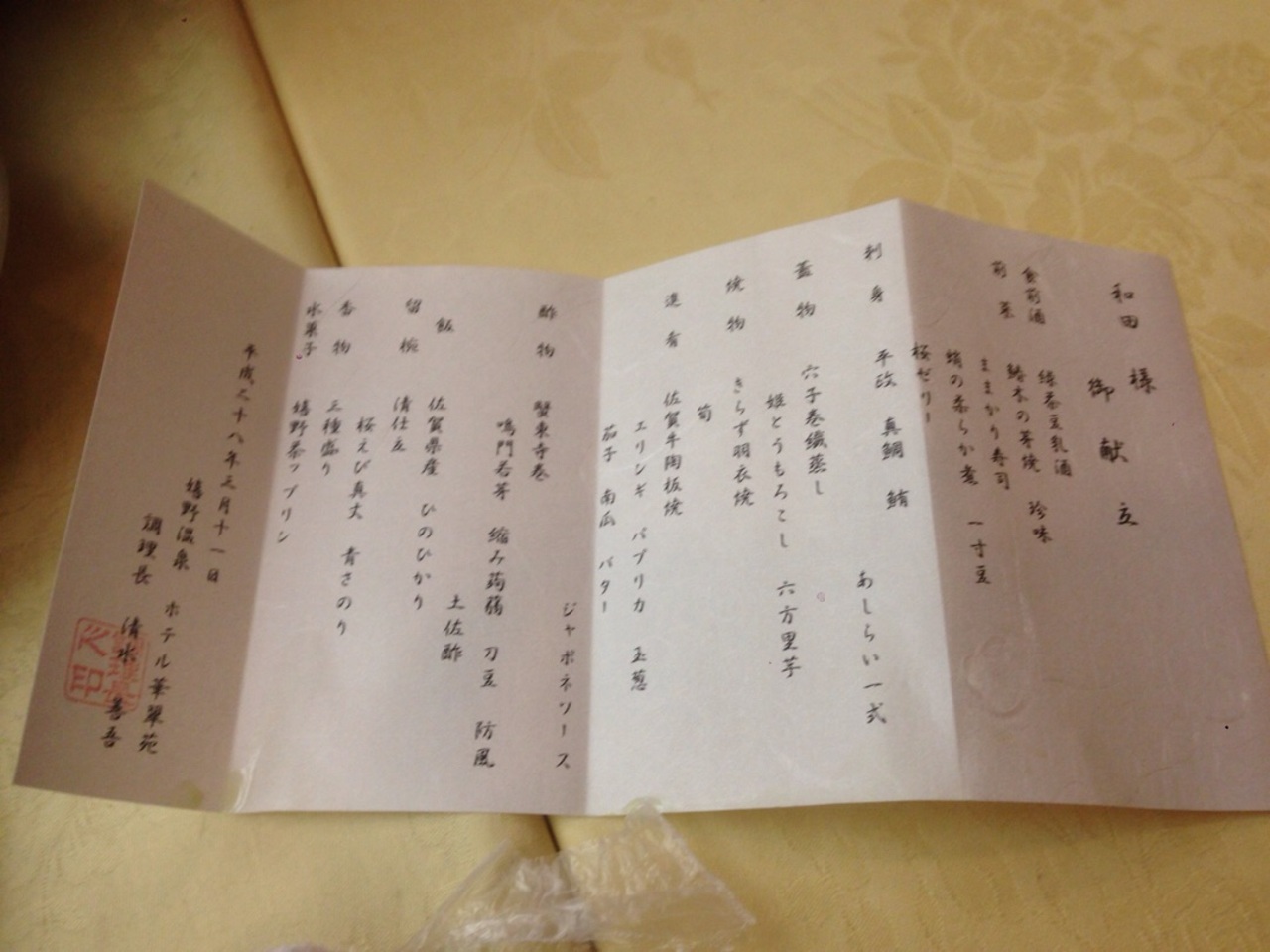 - チェックイン時の案内が丁寧であいさつもさわやかです。食事の際の料理の1品1品の説明も詳しくて参考になりました。