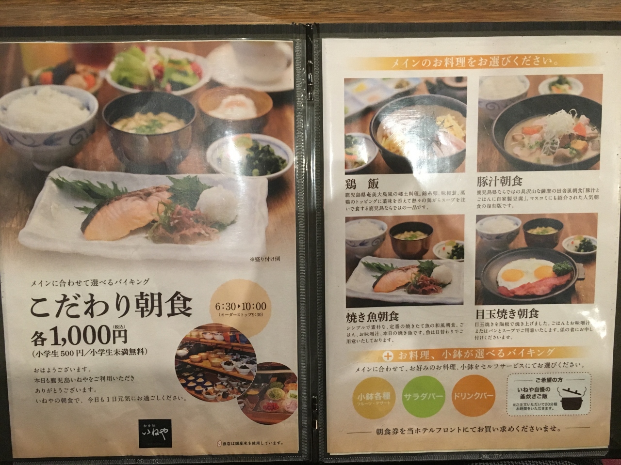 朝食も鹿児島の名物が揃っており、バイキング形式で、非常に満足できるメニューでした。