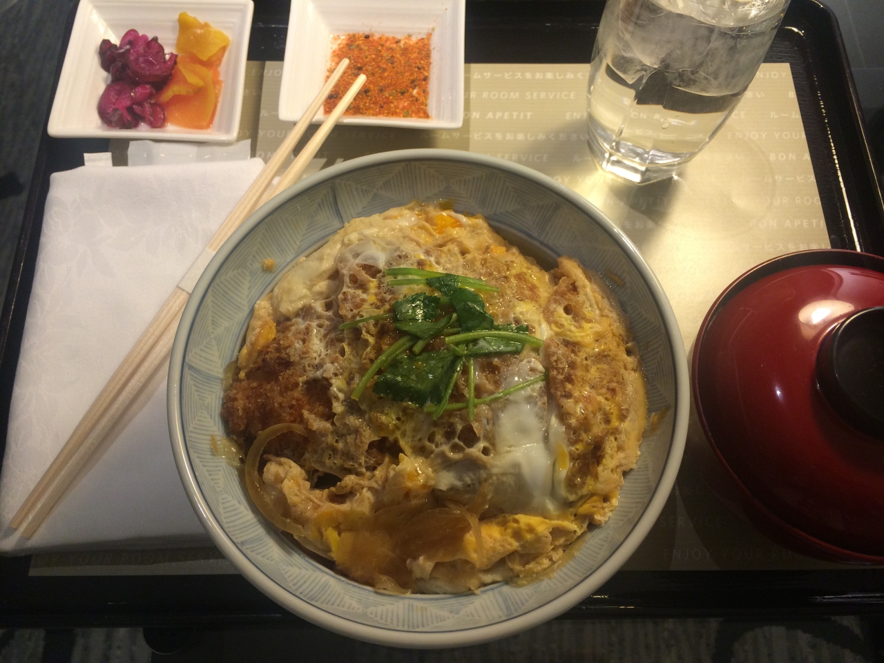 お腹が空いたのでルームサービスにカツ丼を注文しました。美味しかったです。