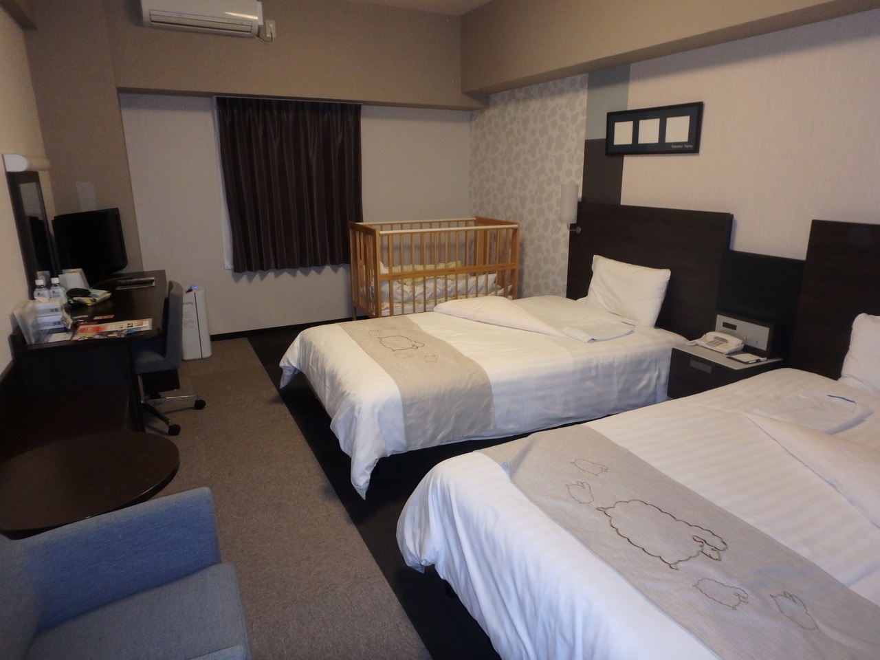 部屋は普通のツインを予約していたのですが、羊ルームなるものにアップグレードしていて、部屋の広さは変わりませんが、枕や、ミネラルウォーター、入浴剤のサービスがありました。