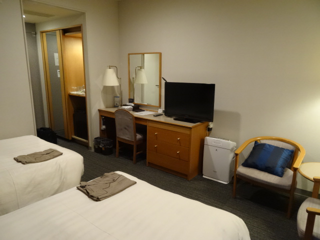 空港から交通センターまでリムジンバスで40分。交通センターから信号2つでホテルに到着と便利です。当然アーケードも近いので食事ショッピングなどにも困りません。熊本城まで歩いて15分くらいなので朝の散歩にもいい場所かと思います。部屋はツインのシングルユースがあるのでゆとりがありました。