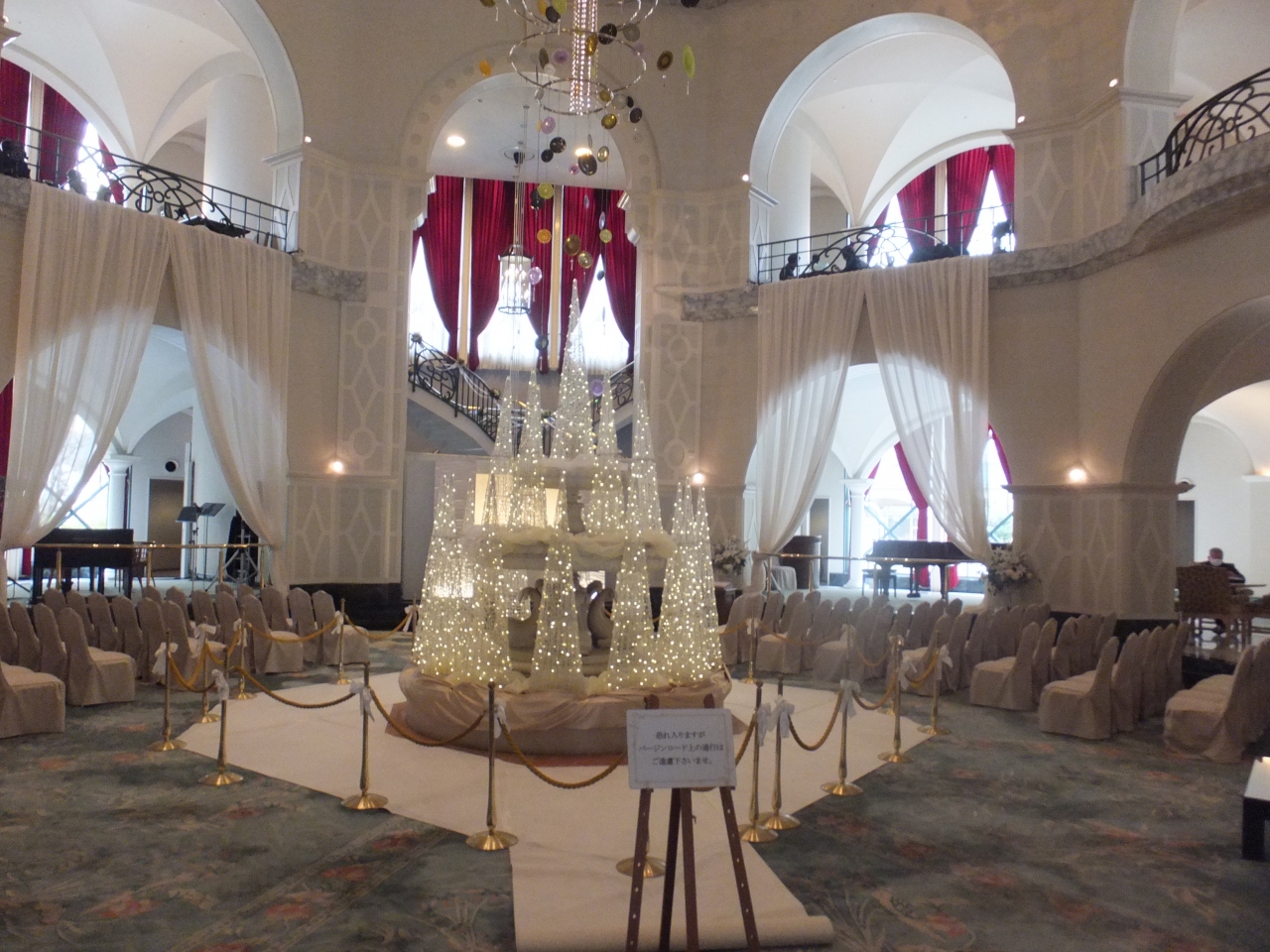 円形状でドーム状のホテルの形で、欧米スタイルの内装は、ウェディングや観光にはいいと思います。
