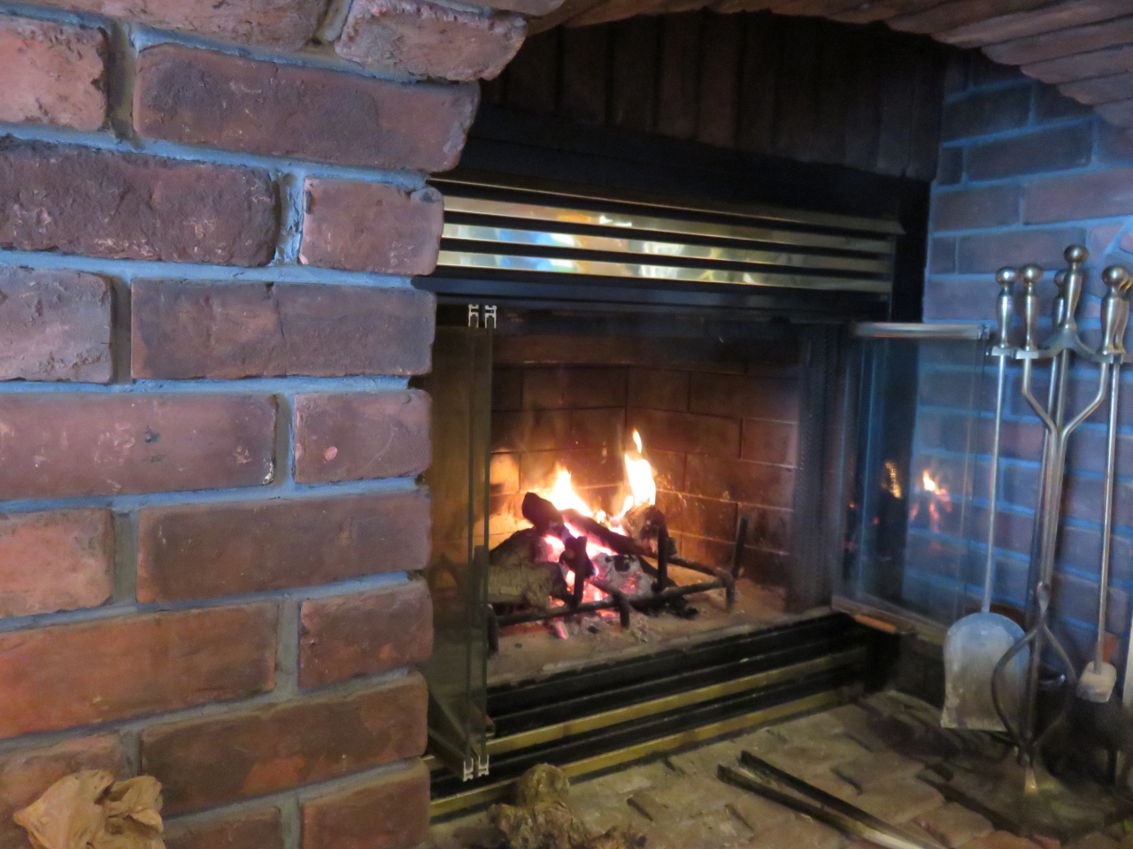 まだ暖炉に火がくべてあって、ほのかな炎の明るさと、バチバチ槇がはじける音に癒されました