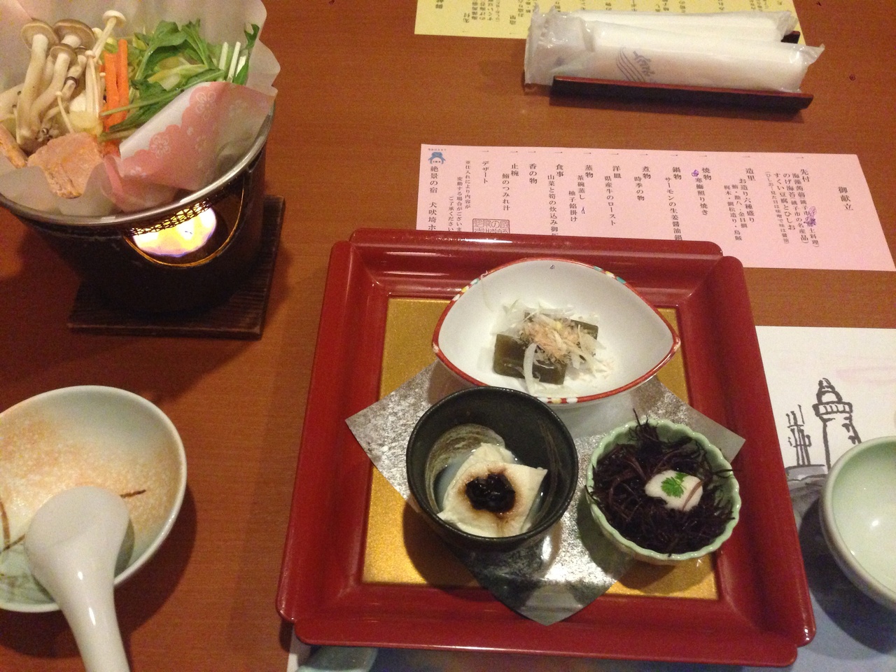 夕食は、灯台を眺めながらの席でいただく事ができました、また、朝食の種類が豊富でおすすめです!どれも美味しかったです。