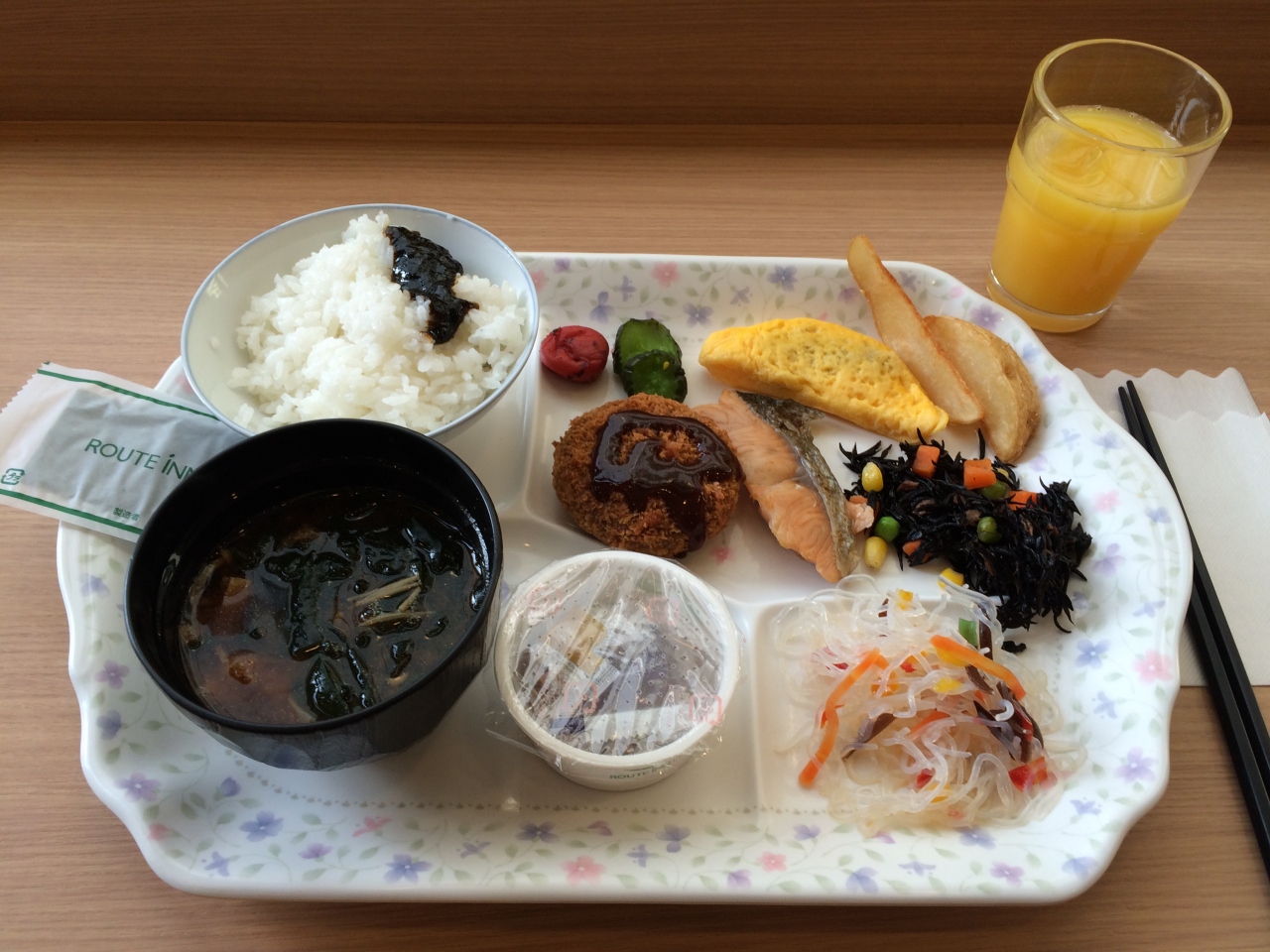 利用した日は宿泊者に大陸の方が多く、朝食バイキングの時は妙に近い距離に陣取られ、目の前にしょうゆを飛ばされたりしたのでゆっくり食べれませんでしたが、バイキングの内容自体はまあまあ普通レベルでした。