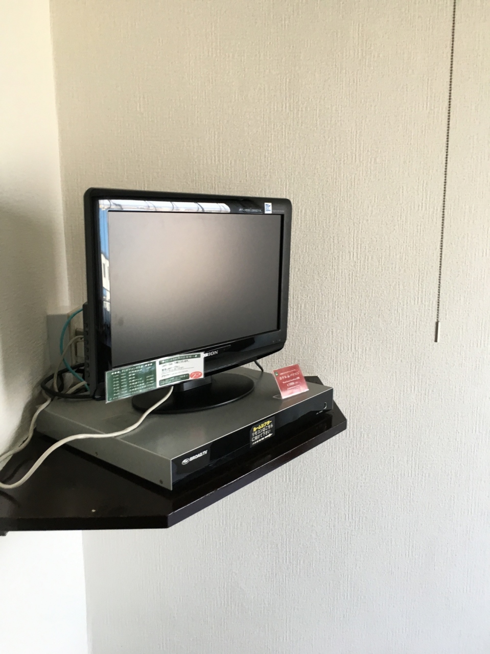不満は、浴室兼トイレが微妙に臭った気がする事と、天井の照明から吊りさがったひも(このおかげでベッドから電気を消す事が出来る)が、テレビを見る時にかなり気になる事です。