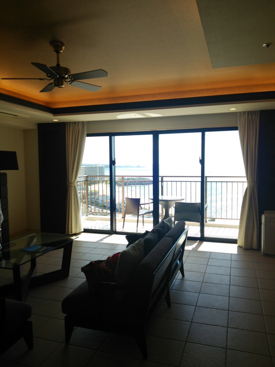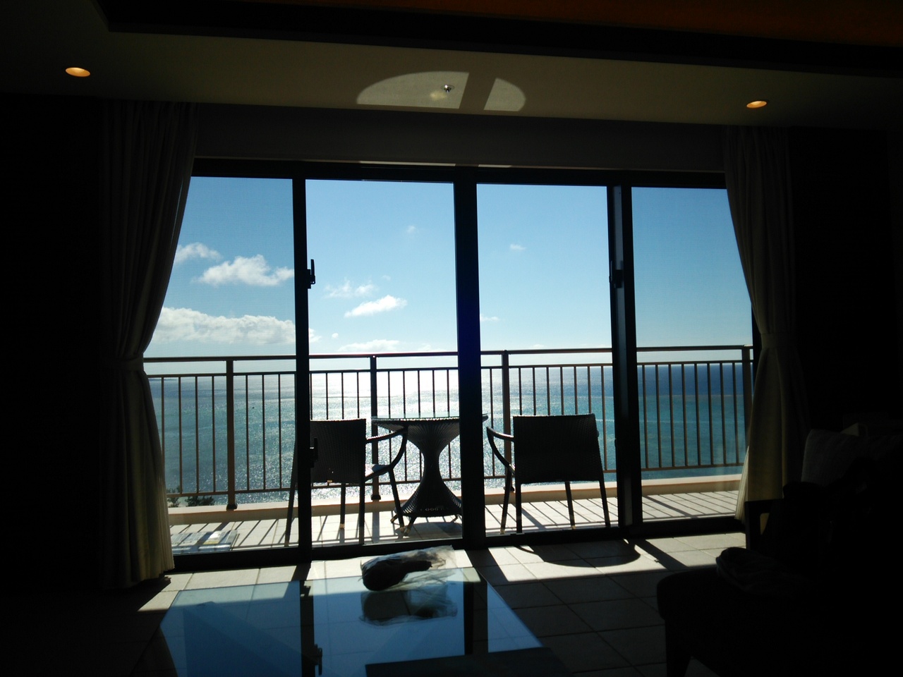 ただ、バルコニーに出ると、電線や付近の民家の屋根が見えてしまい、ちょっと... でもこれままた沖縄ですね。