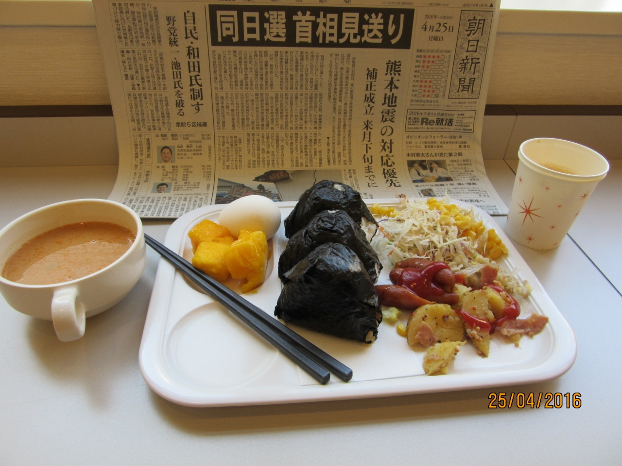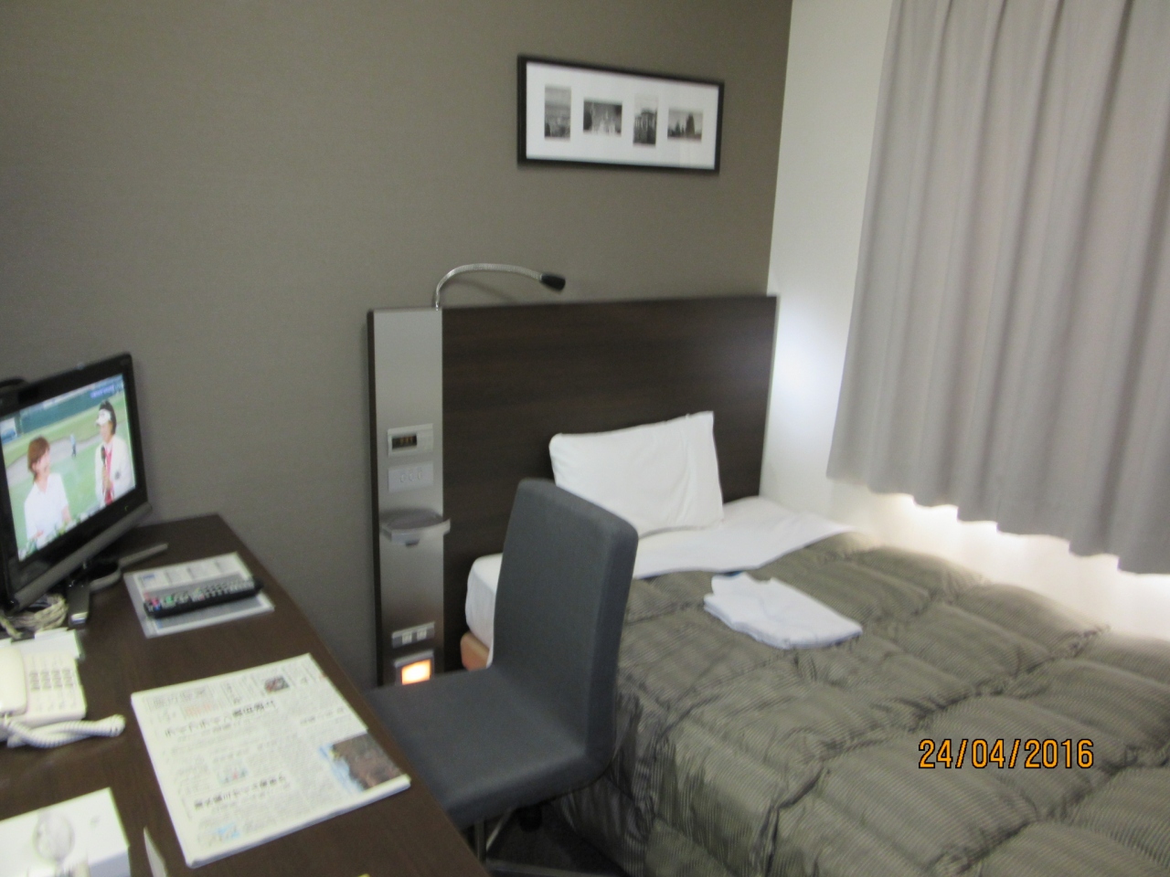 3,800円で朝食バイキング付き。ベッドは広めだが部屋は決して広くはないが色調がダークカラーでしかも使い勝手が良くゆっくりと寛げた。朝食バイキングも決して豪華ではないが、スープとみそ汁・手巻き海苔おにぎりが美味しい。