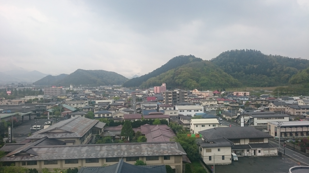 客室からは山々がきれいに見えるはずだったのですがあいにくの天気でいまいち…。